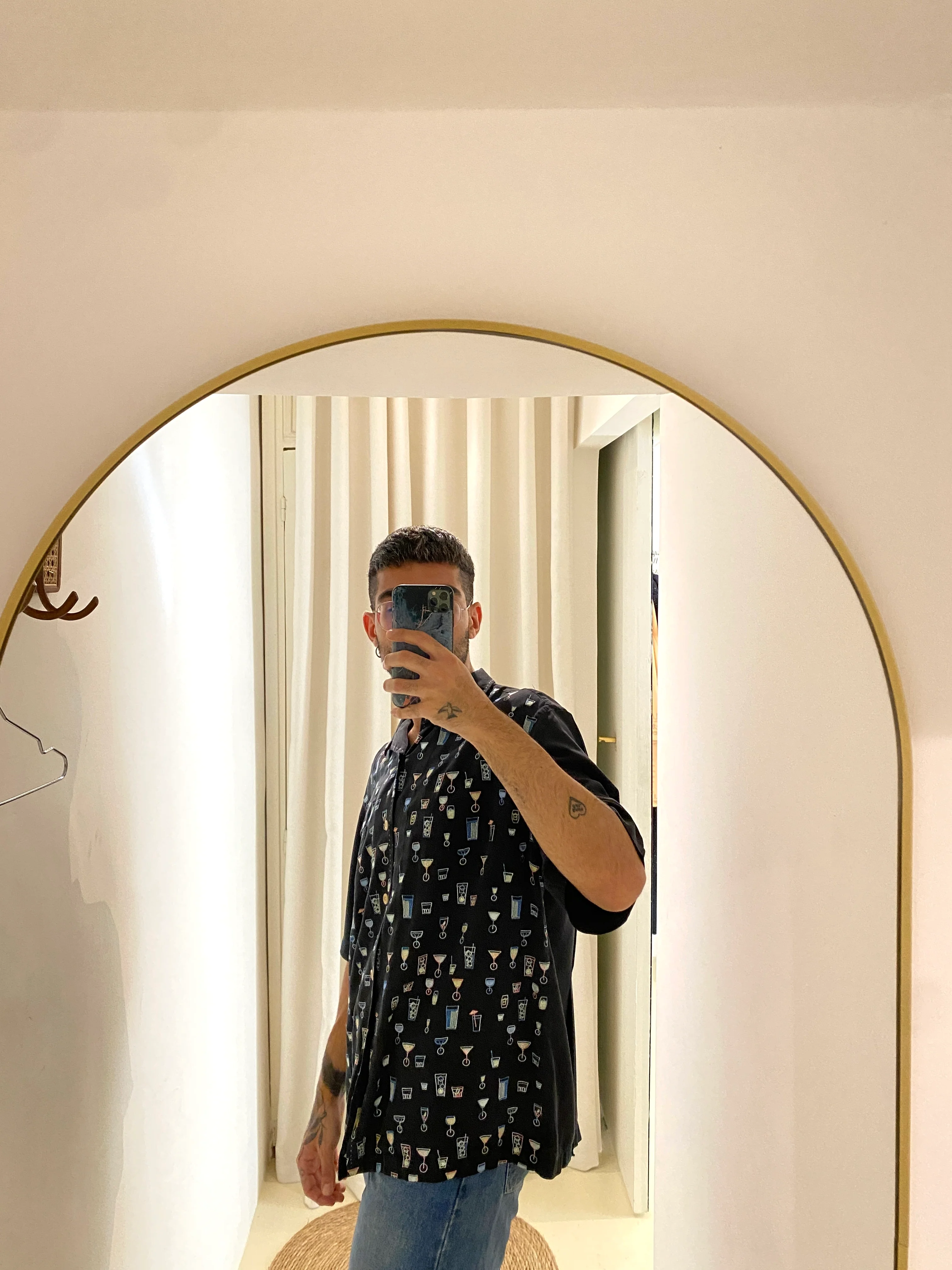 Hand-selected vintage polo shirt in navy blue with colorful embroideries of cocktails.